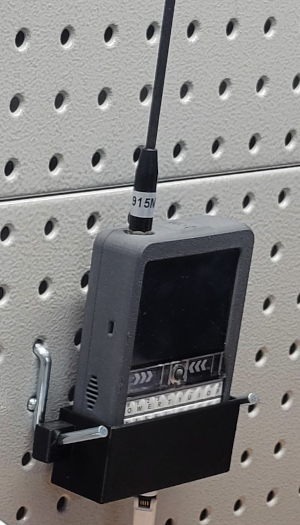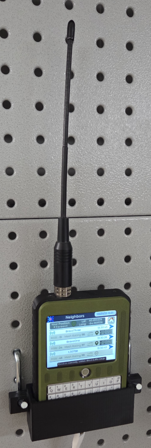 This 3D printable wall mount holds your T-Deck plus against a peg board or wall, as shown on the left.