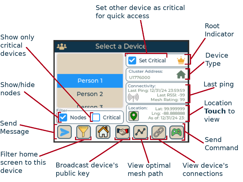This screen allows you to view information related to any given device in your cluster. Some of what you can see and do as far as interacting with different devices in your cluster are dependent on the other device having permissions enabled (like remote command and location sharing).