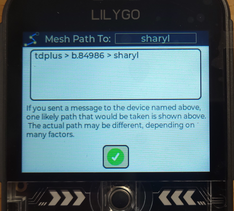 You can view the shortest known mesh path to any device in your cluster. This tells you the path that would likely be taken if you were to send a message at any given moment. This path changes automatically as connectivity throughout the cluster changes.