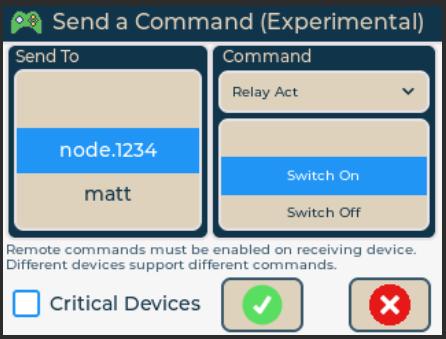 | 3. Choose a command and send it After your command is received and acknowledged, it will be executed (if enabled on the recipient device). |
